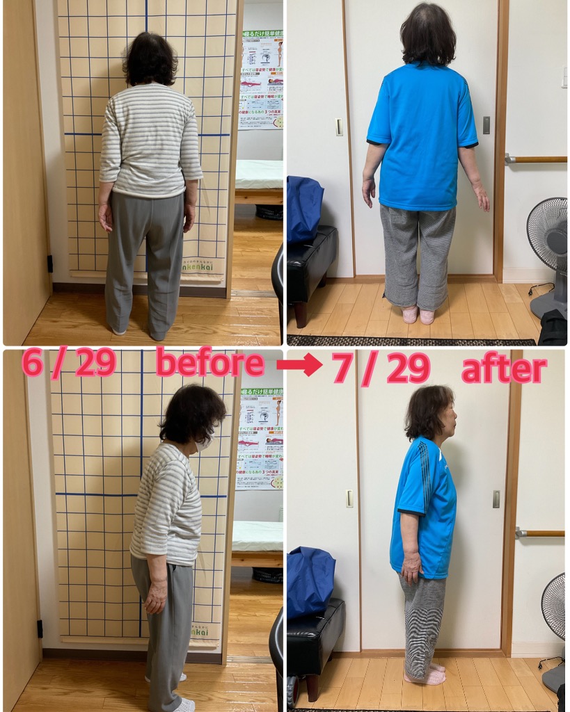 質の良い睡眠環境に変えてみたり、食餌を変えたり、簡単な体操を繰り返してもらって1ヶ月!