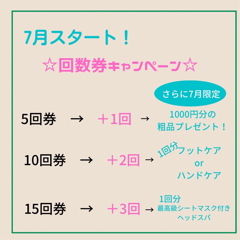 この度7月からお得な回数券作りました。7月購入者限定の特典もございます。
